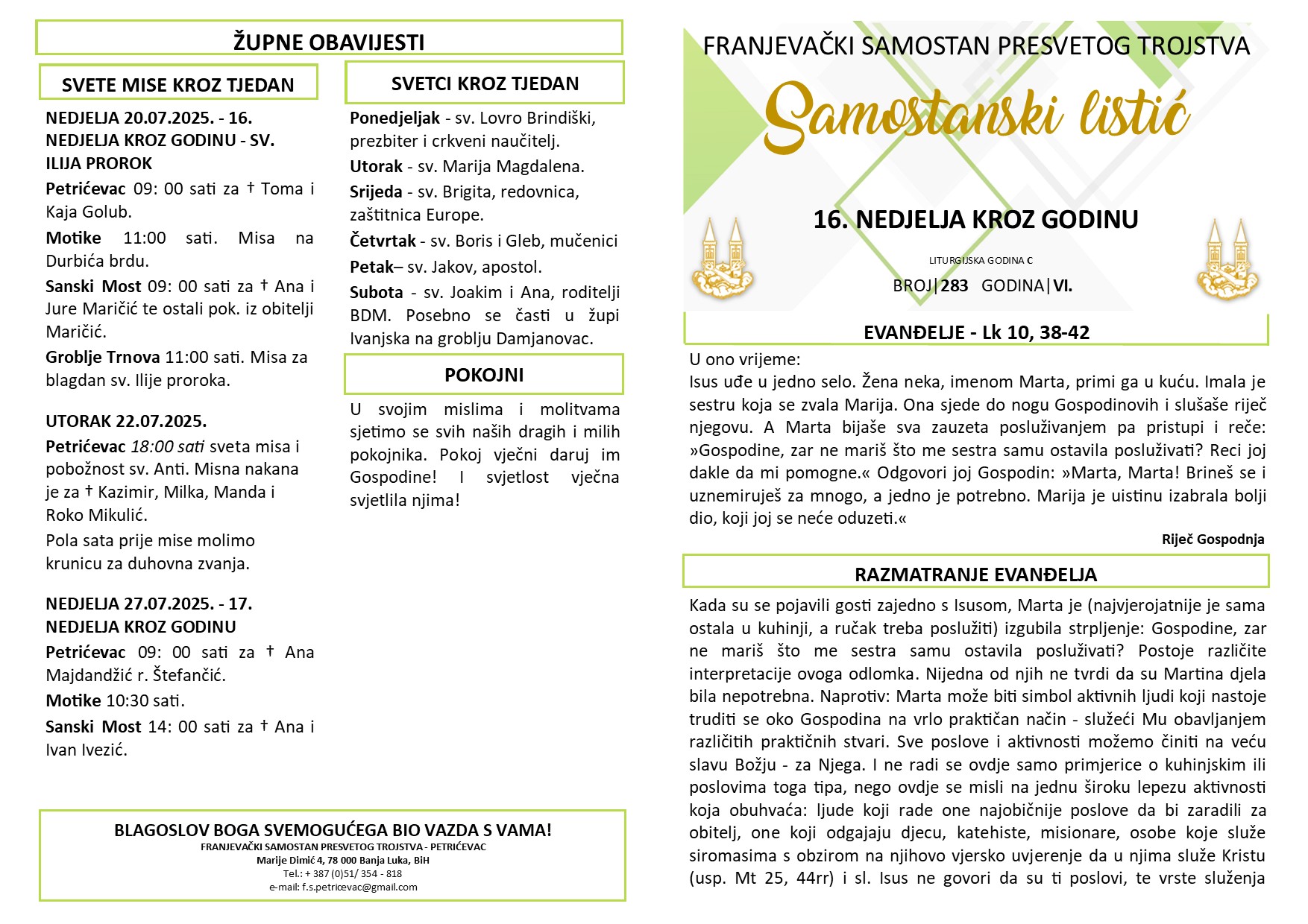 SAMOSTANSKI LISTIĆ 283 | 16. NEDJELJA KROZ GODINU