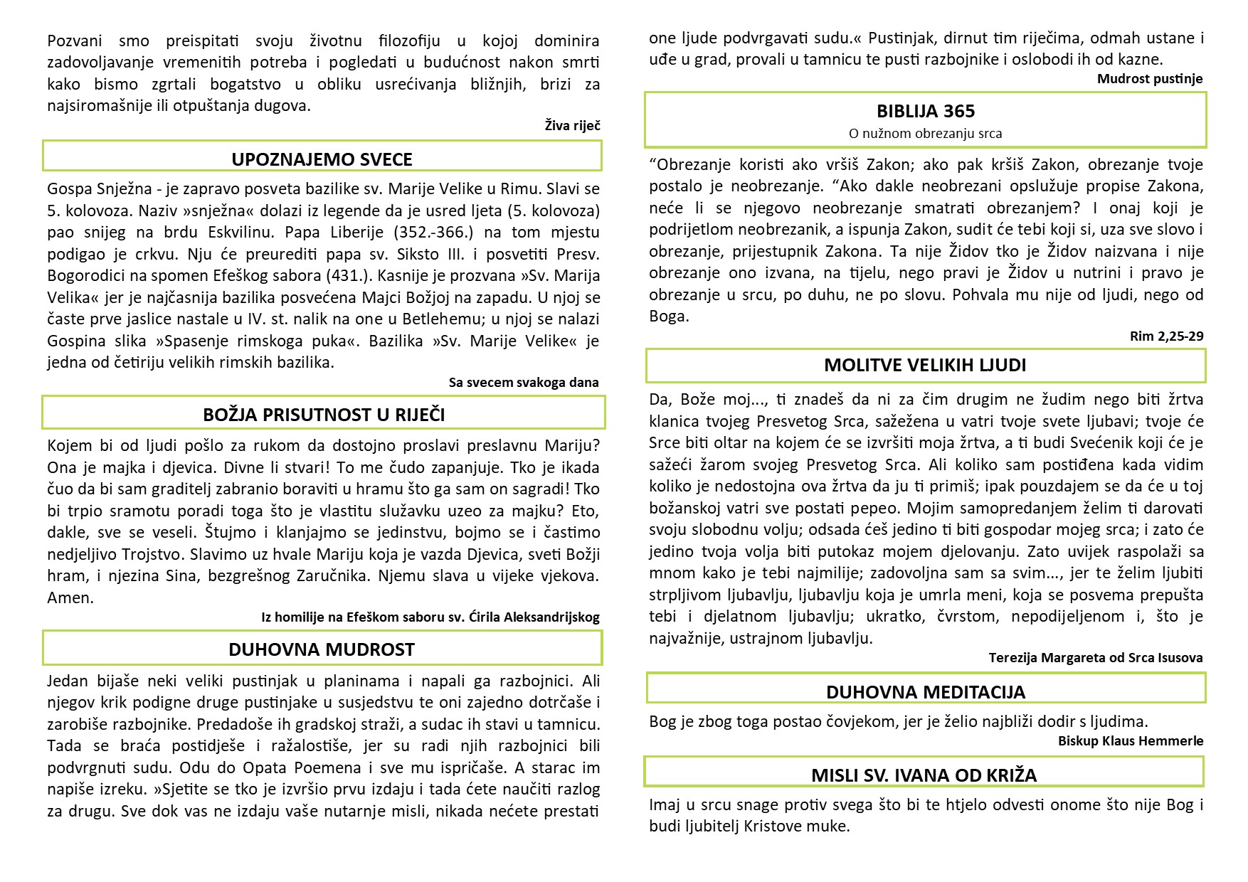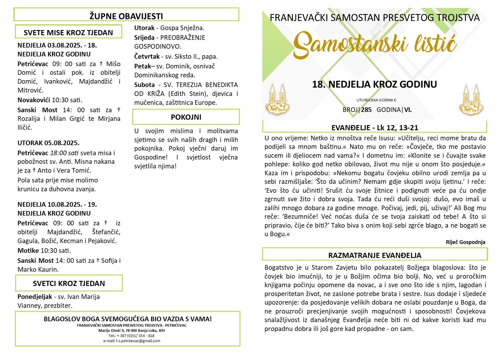 SAMOSTANSKI LISTIĆ 285 | 18. NEDJELJA KROZ GODINU