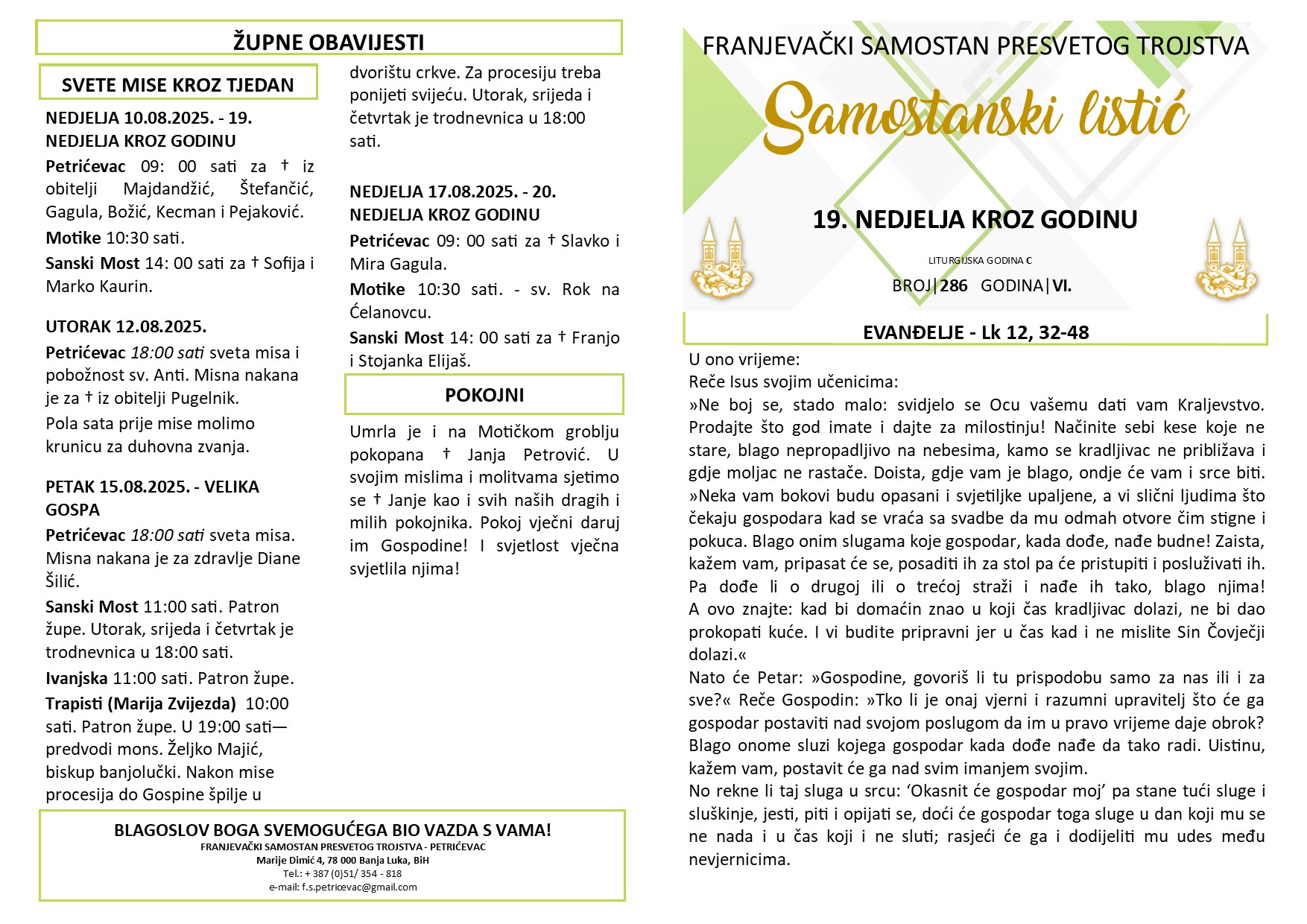 SAMOSTANSKI LISTIĆ 286 | 19. NEDJELJA KROZ GODINU