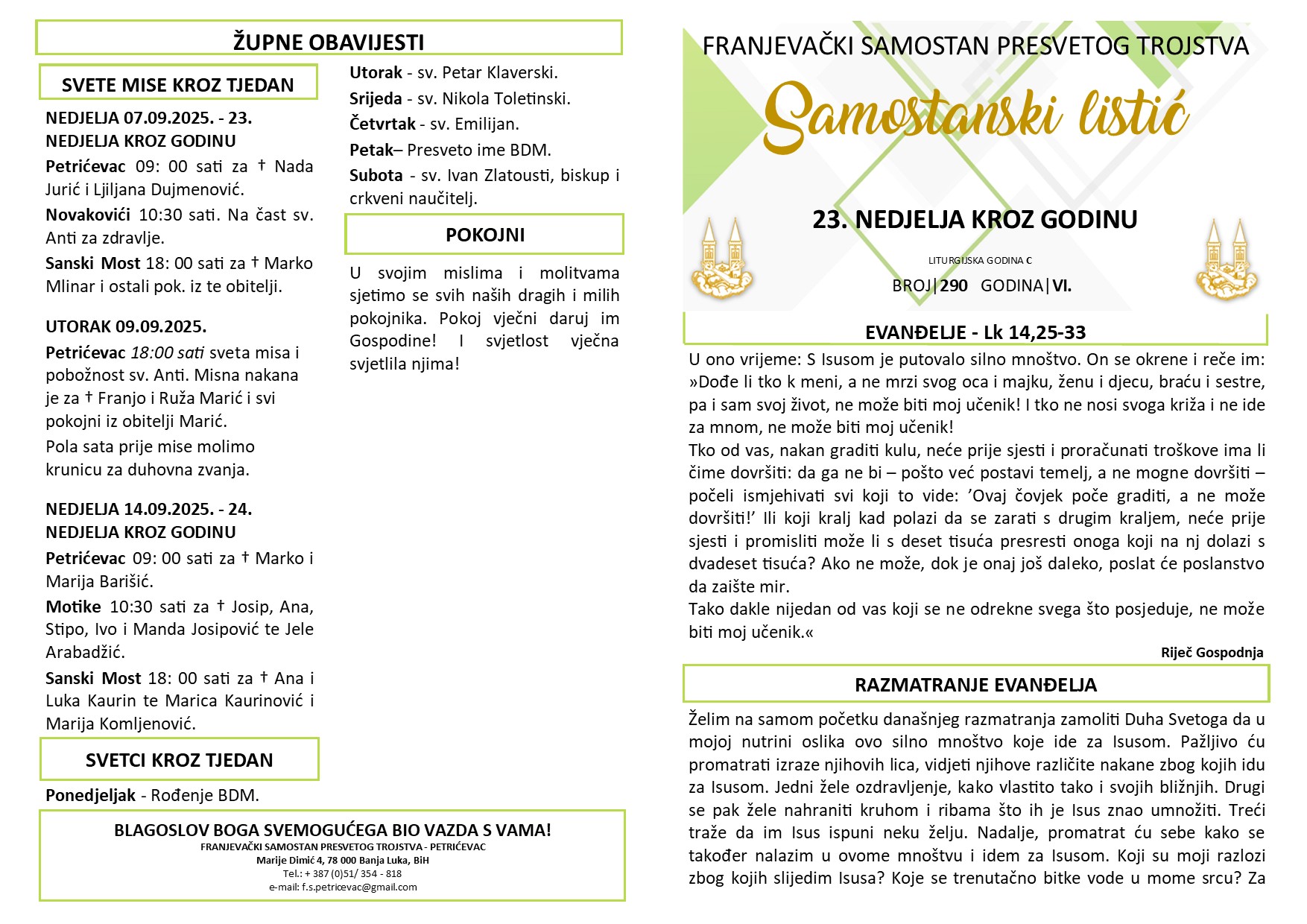 SAMOSTANSKI LISTIĆ 290 | 23. NEDJELJA KROZ GODINU