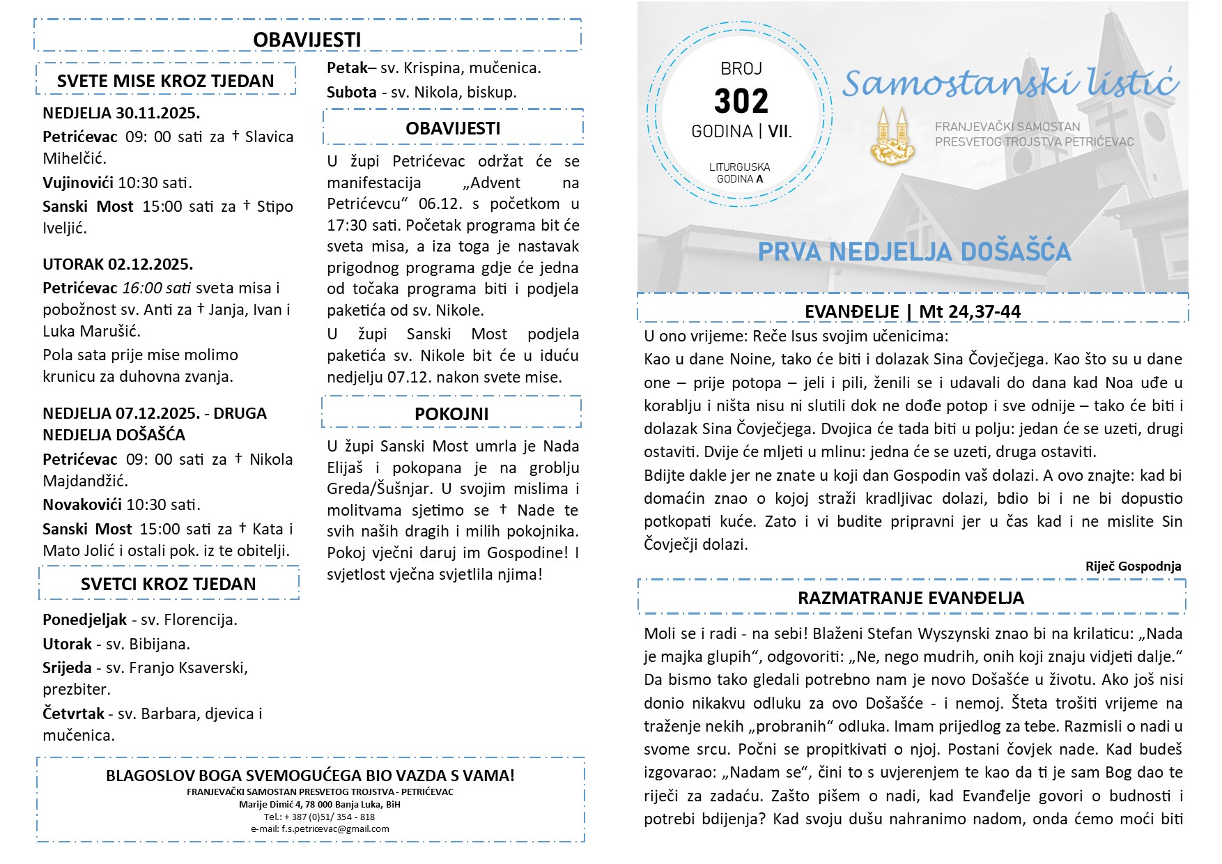 SAMOSTANSKI LISTIĆ 302 | PRVA NEDJELJA DOŠAŠĆA