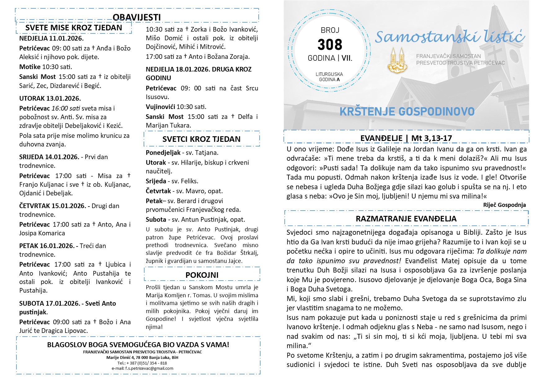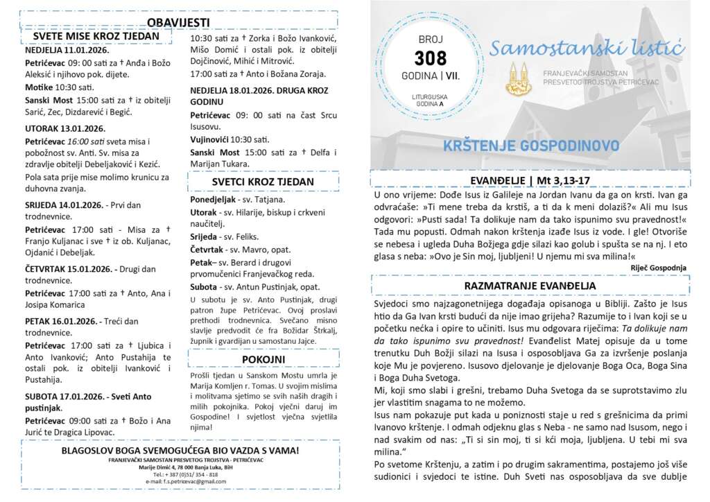 SAMOSTANSKI LISTIĆ 308 | KRŠETNJE GOSPODINOVO / PRVA NEDJELJA KROZ GODINU