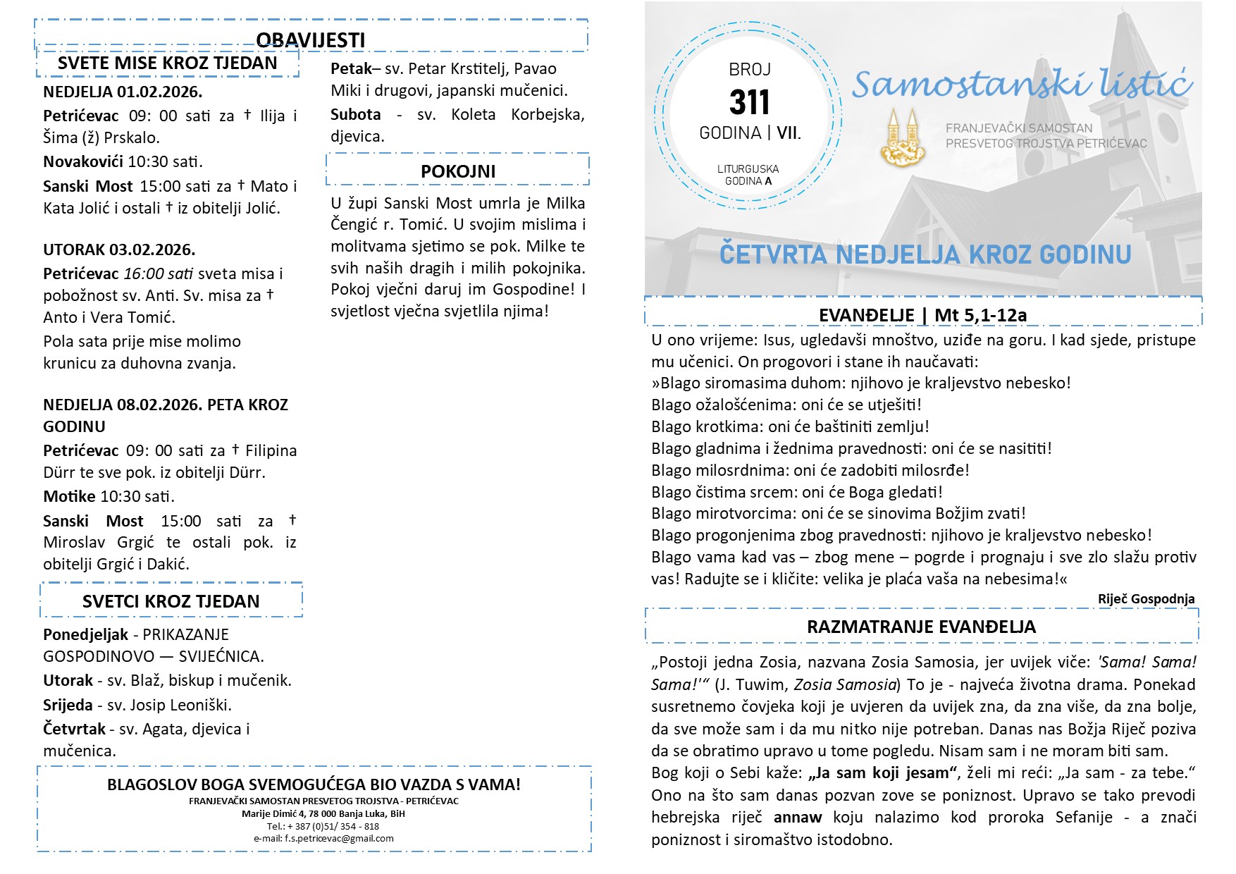 SAMOSTANSKI LISTIĆ 311 | ČETVRTA NEDJELJA KROZ GODINU