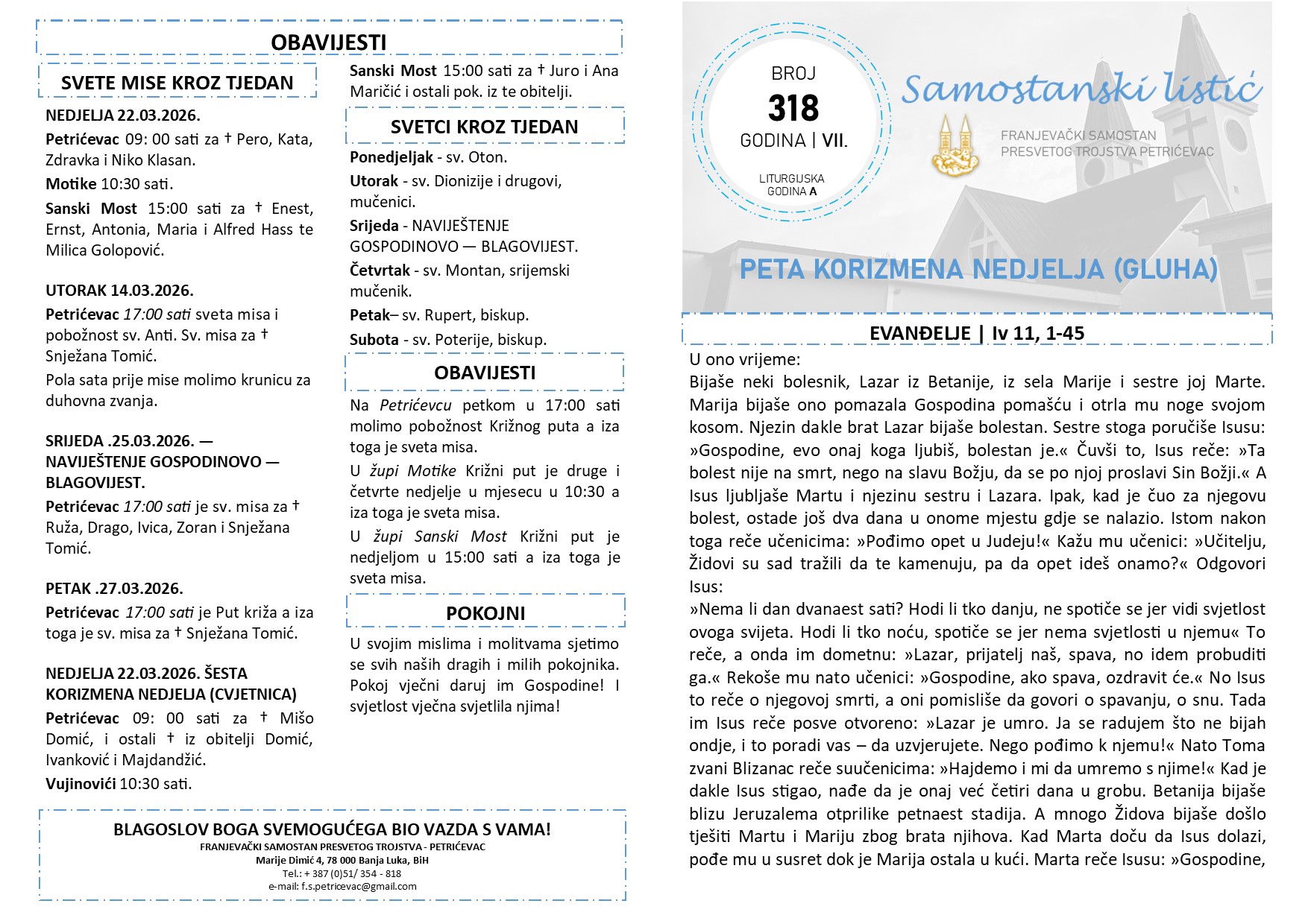SAMOSTANSKI LISTIĆ 318 | PETA KORIZMENA NEDJELJA (GLUHA)