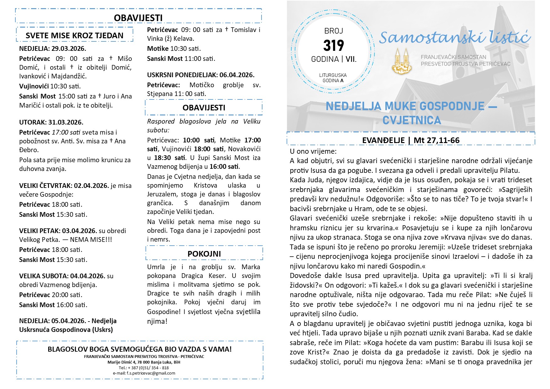 SAMOSTANSKI LISTIĆ 319 | NEDJELJA MUKE GOSPODNJE (CVJETNICA)