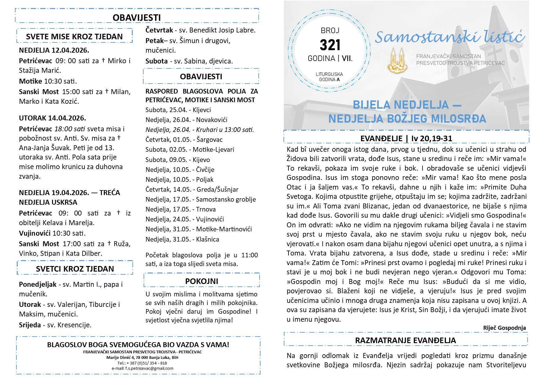 SAMOSTANSKI LISTIĆ 321 | DRUGA USKRSNA NEDJELJA