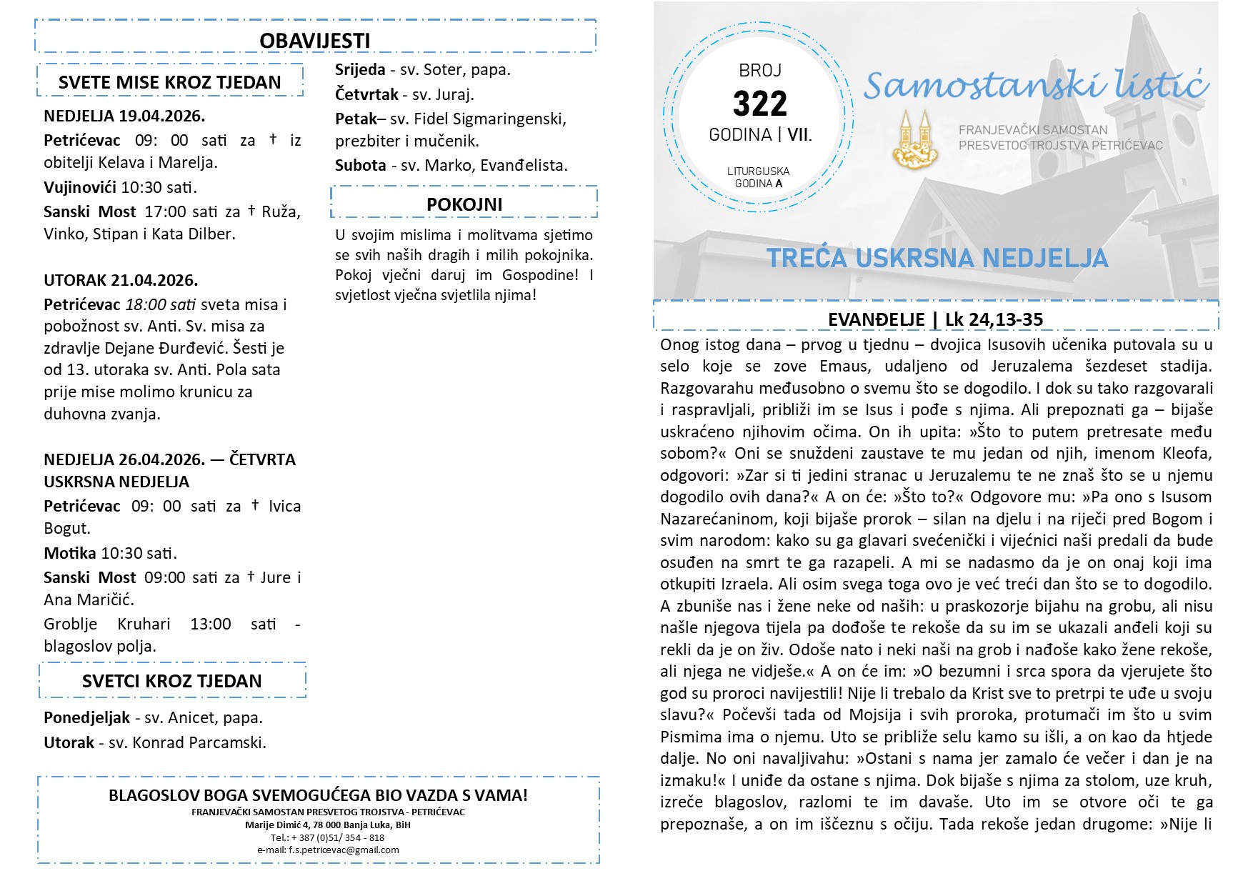 SAMOSTANSKI LISTIĆ 322 | TREĆA USKRSNA NEDJELJA