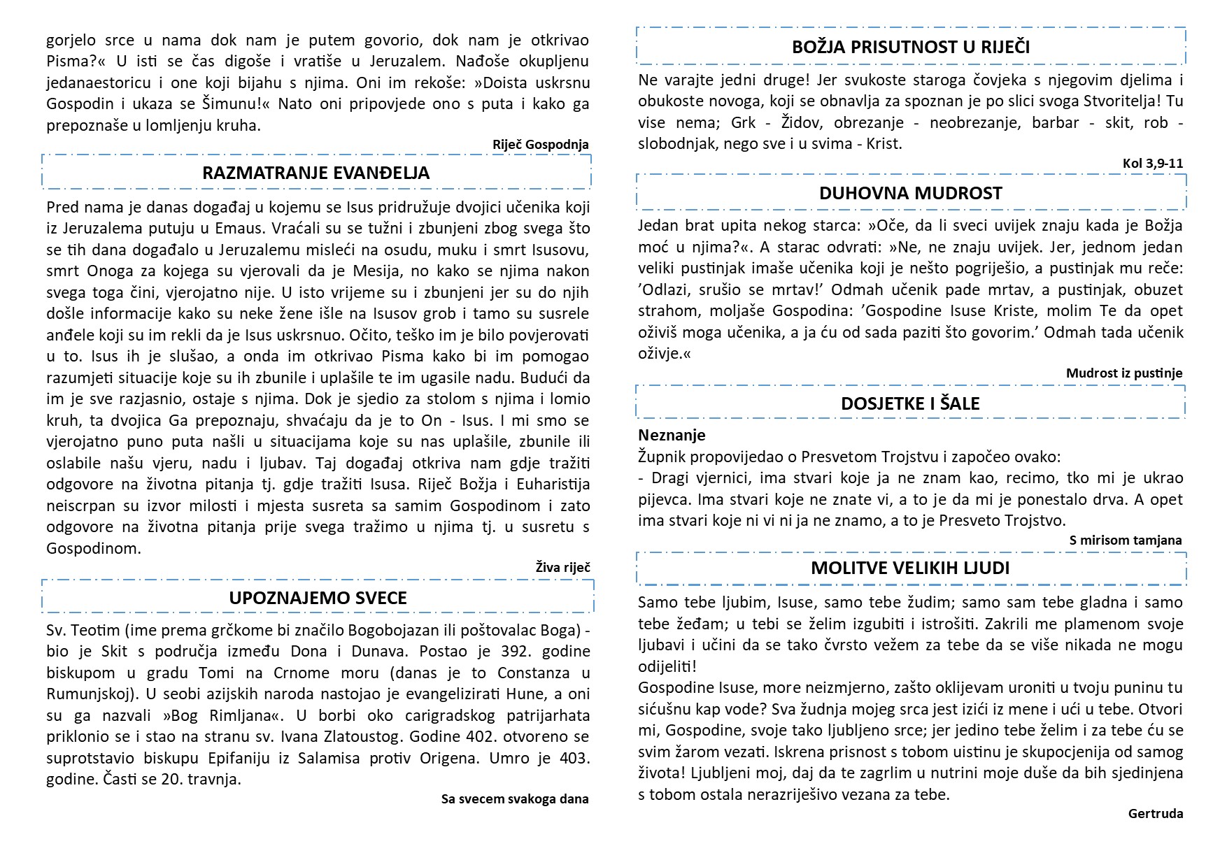 ŽUPNI LISTIĆ – BR. 46 (2. NEDJELJA PO BOŽIĆU)