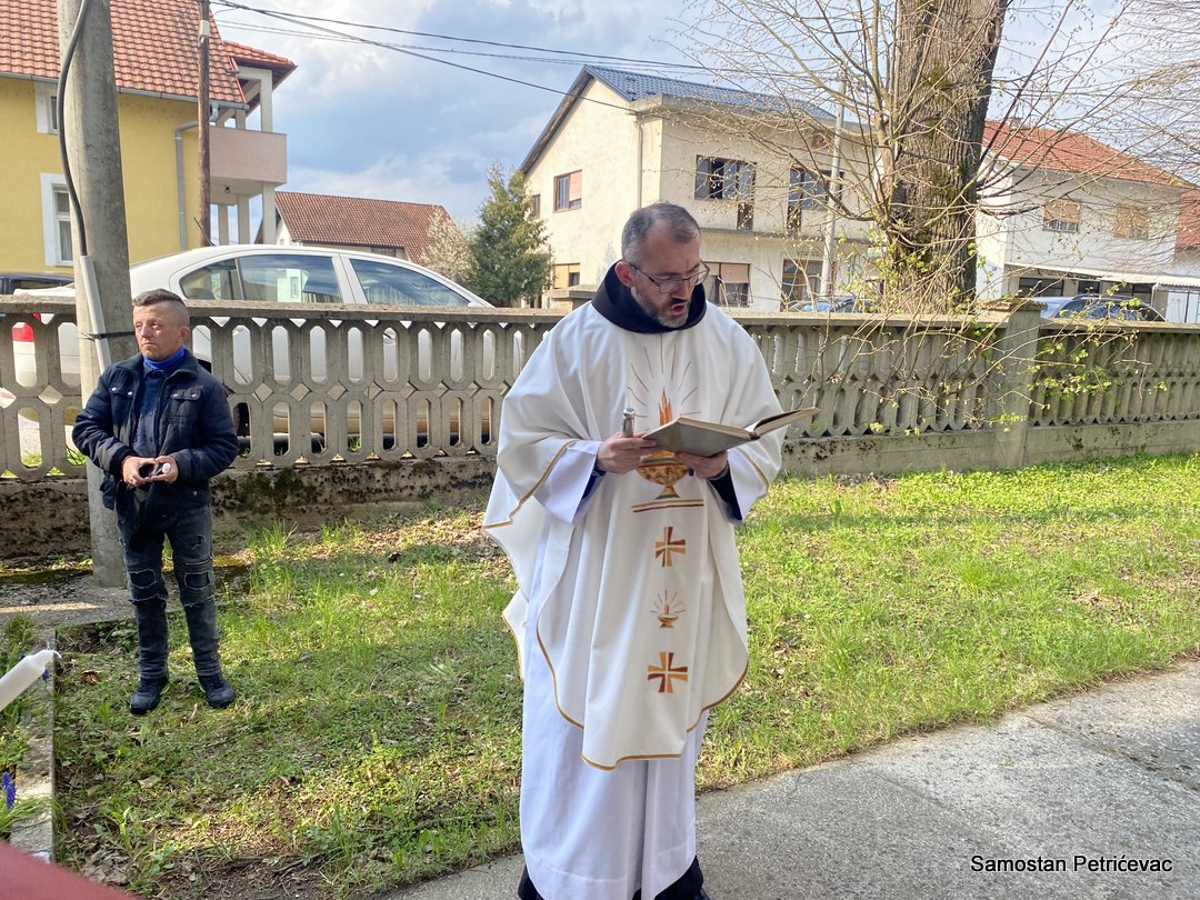 Po završetku svih obreda na kraju svete mise fra Tomislav je blagoslovio i Uskršnje jelo koje su vjernici iz Sanskog Mosta ali i pojedini iz susjednih župa donijeli na blagoslov. To je jelo se blaguje na Uskrsno jutro i ta se tradicija još uvijek u velikoj mjeri obdržava. Poslije blagoslova jela ispred župne crkve uslijedilo je srdačno čestitanje svih prisutnih vjernika.