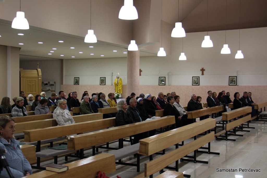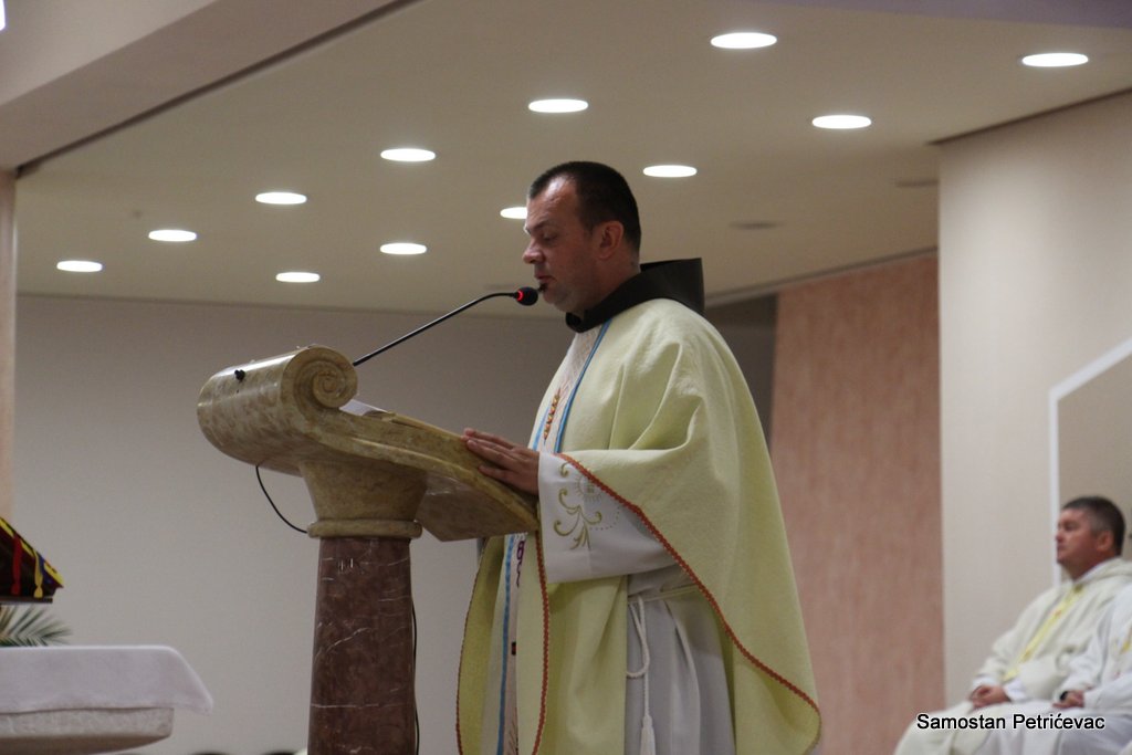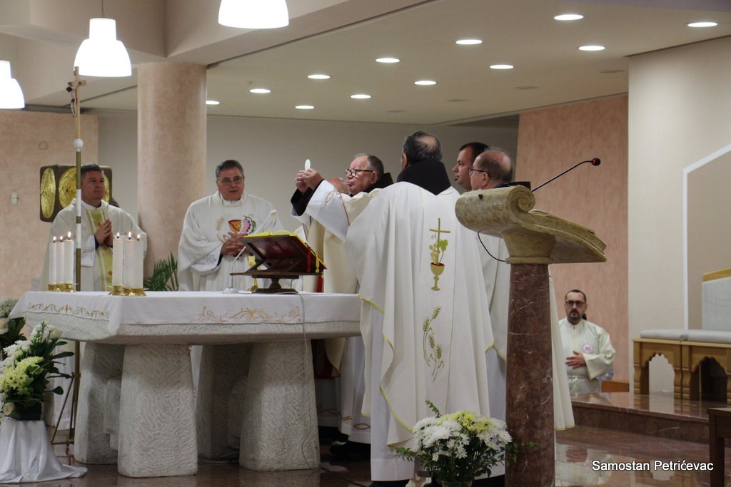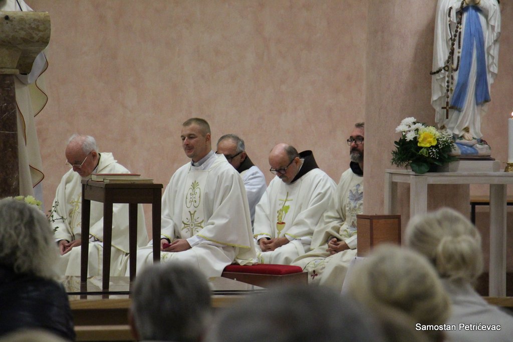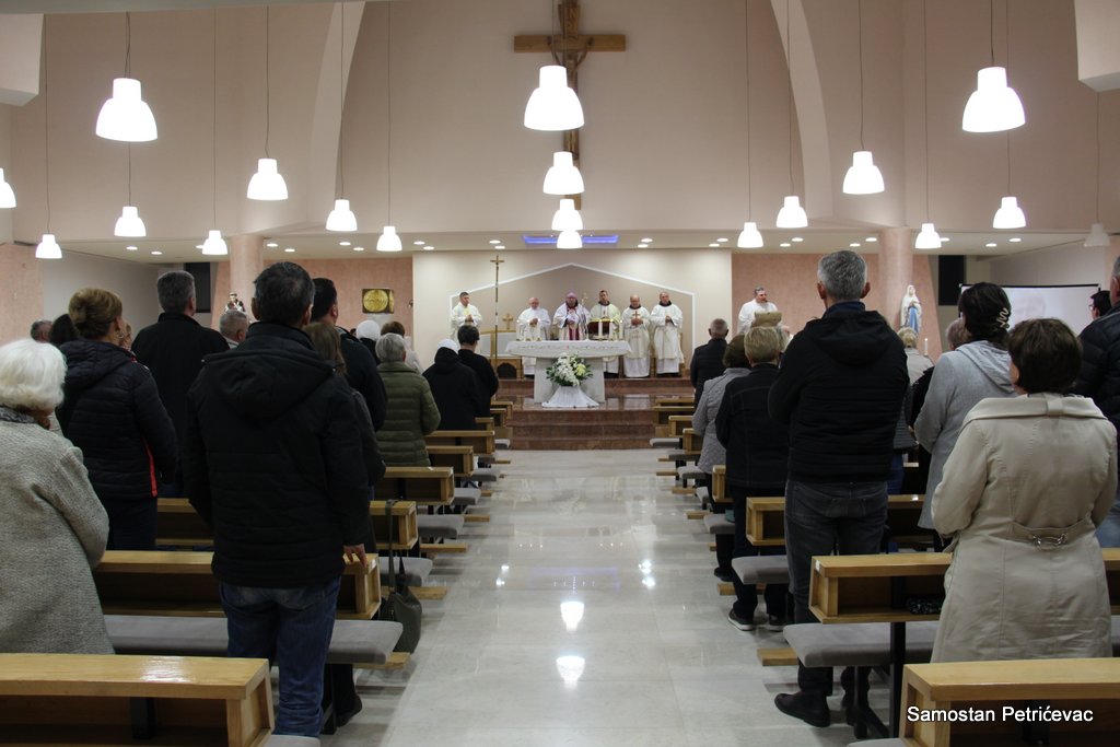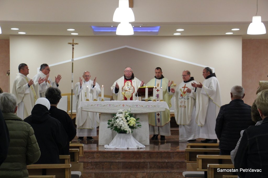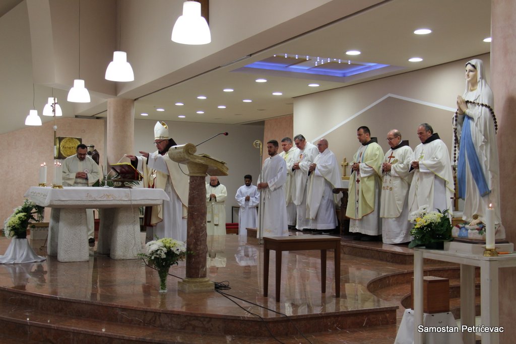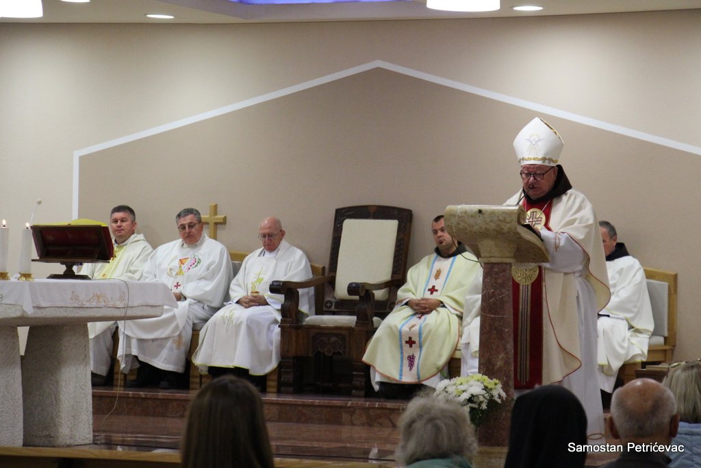 U lijepo popunjenoj crkvu na Petrićevcu biskup fra Marko je predslavio misu uz koncelebraciju 15-ak svećenika. U svojoj prigodnoj homiliji biskup fra Marko je istaknuo dvije teme koje su bile središte jučerašnjeg događaja. Prva je da se već navršilo 7 godina od kako je posvećena ova crkva baš na današnji dan i kako taj datum ima dublje značenje za ovu župu. Budući da je i sam papa sv. Ivan Pavao II. u svom 101. pastirskom pohodu na ovom mjestu uzdigao na čast oltara bl. Ivana Merza, banjolučanina.