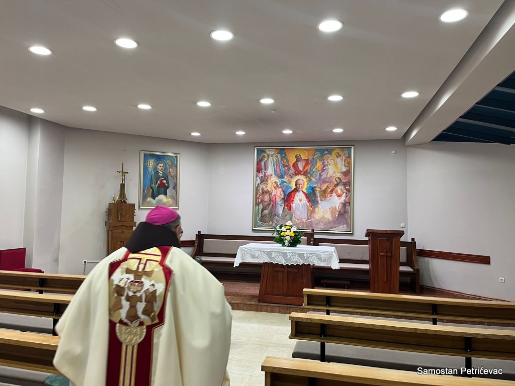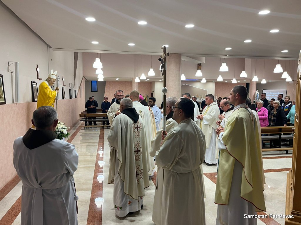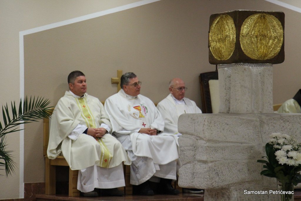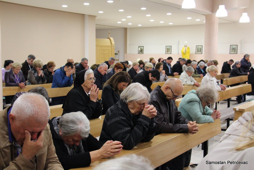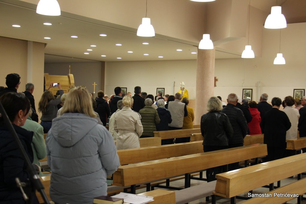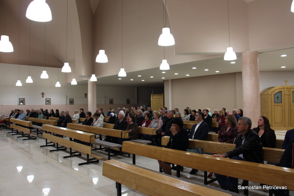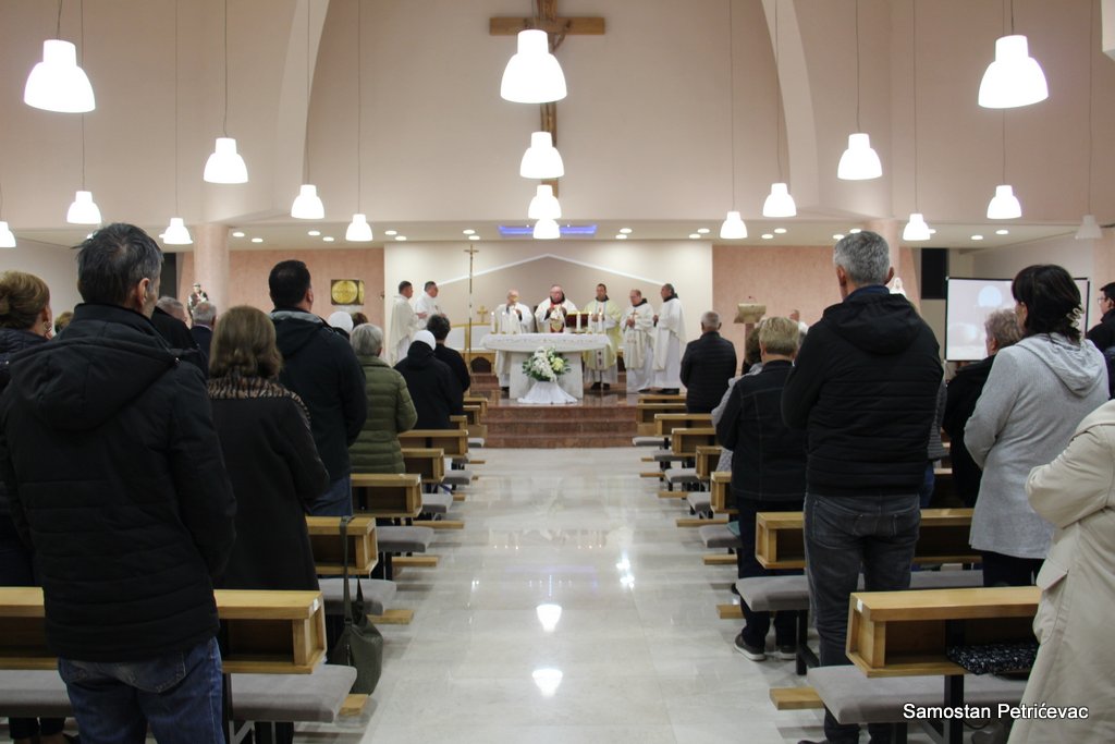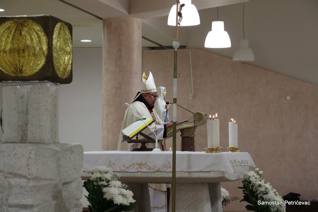 U lijepo popunjenoj crkvu na Petrićevcu biskup fra Marko je predslavio misu uz koncelebraciju 15-ak svećenika. U svojoj prigodnoj homiliji biskup fra Marko je istaknuo dvije teme koje su bile središte jučerašnjeg događaja. Prva je da se već navršilo 7 godina od kako je posvećena ova crkva baš na današnji dan i kako taj datum ima dublje značenje za ovu župu. Budući da je i sam papa sv. Ivan Pavao II. u svom 101. pastirskom pohodu na ovom mjestu uzdigao na čast oltara bl. Ivana Merza, banjolučanina.